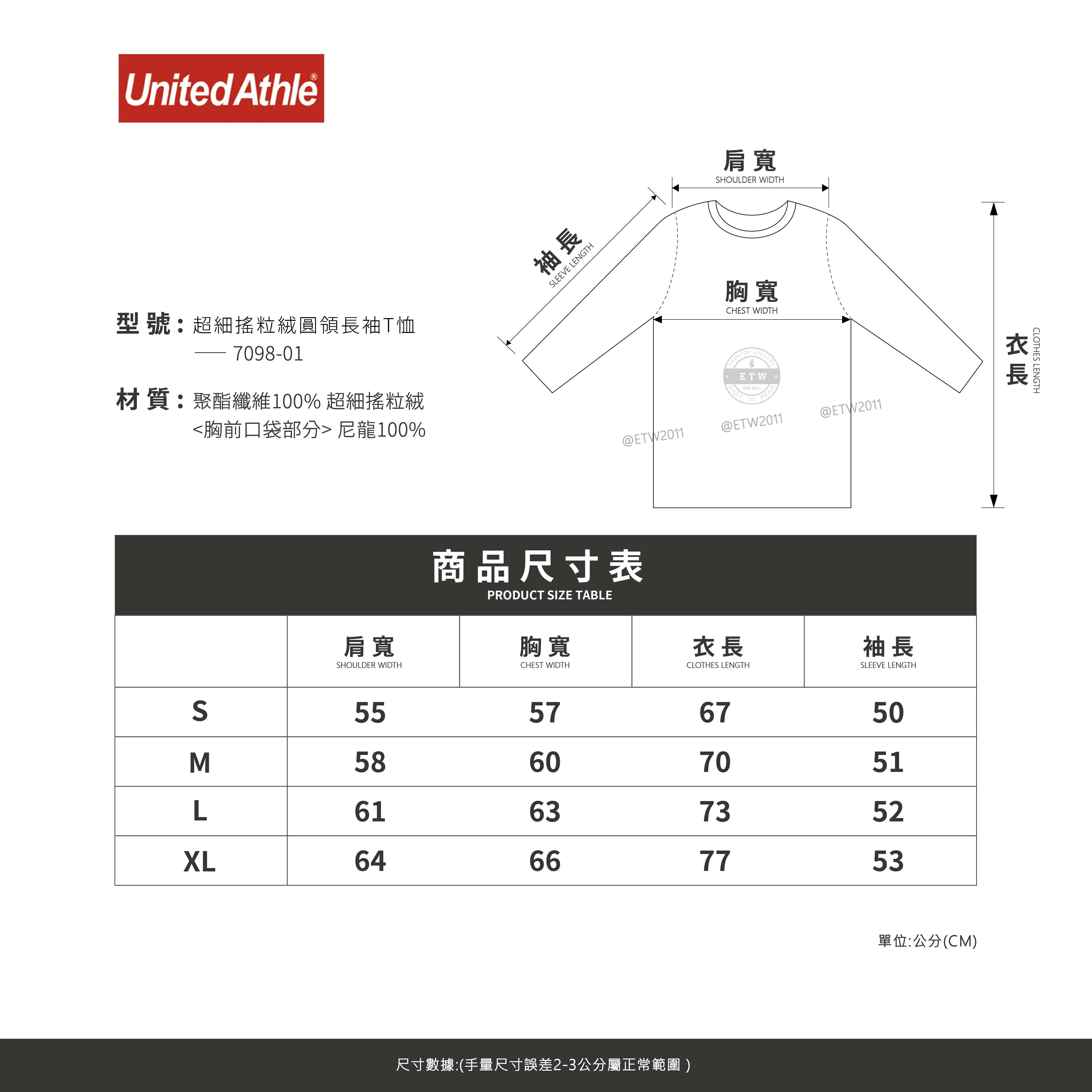 ☆ETW☆【EASY TO WEAR】日本 United Athle 7098-01 超細搖粒絨 圓領長袖T恤
