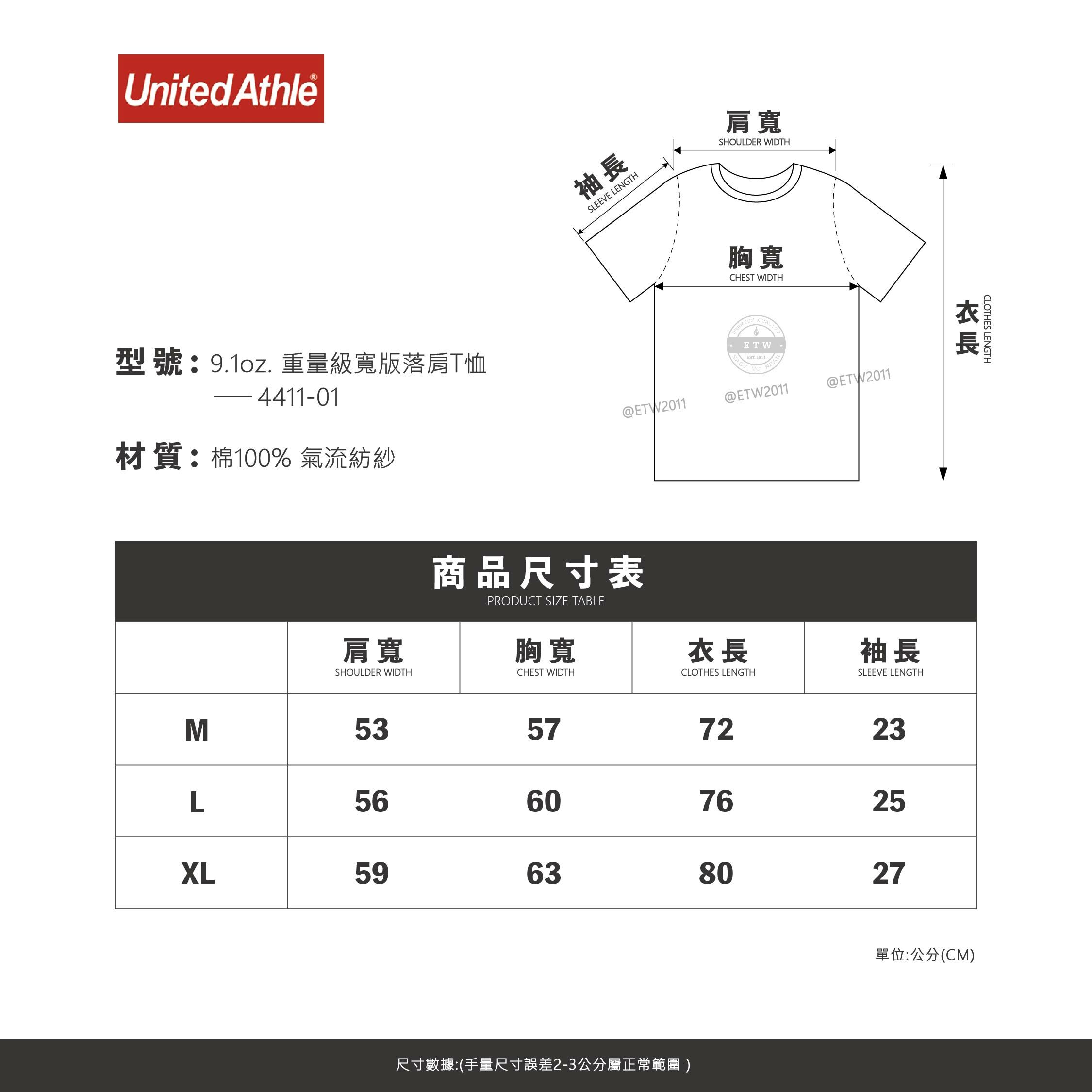 ☆ETW☆【EASY TO WEAR】日本 United Athle 4411-01 9.1oz. 重量級寬版落肩T恤 短T 素T UA